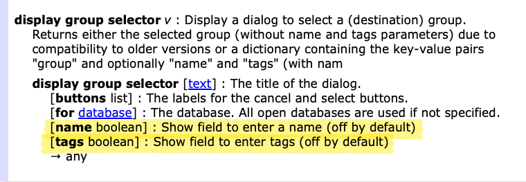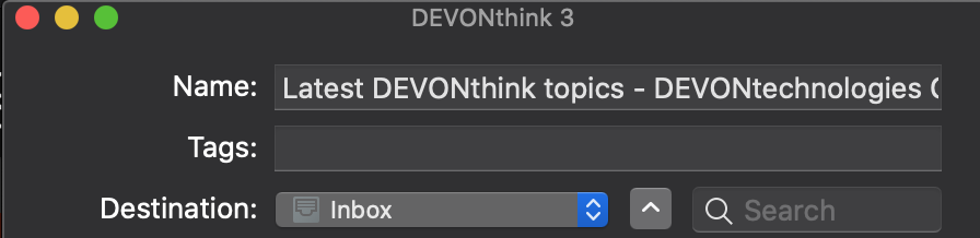 EDIT: Might have found it, the following scrip works fine in DT3 it brings the search and tag field but in DT4 it just saves it straight with out giving me options for search nor tag.