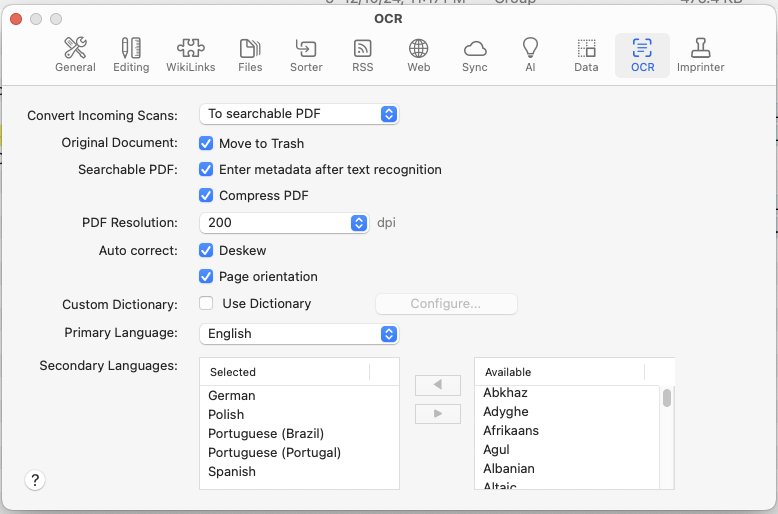 (From p. 243 in the 4.1 manual, Settings > OCR)