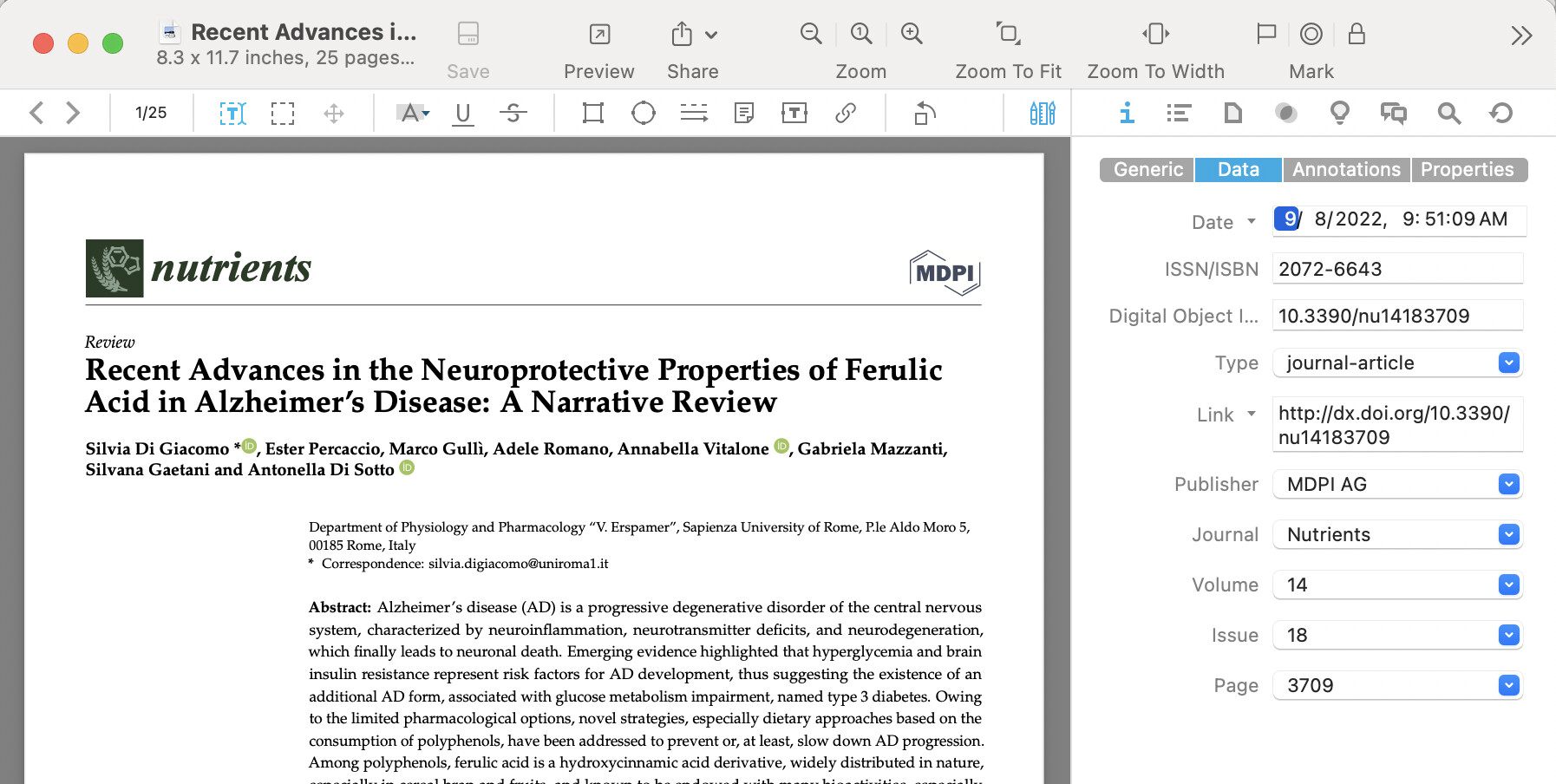 When run on a PDF with a DOI, it yields results like this…