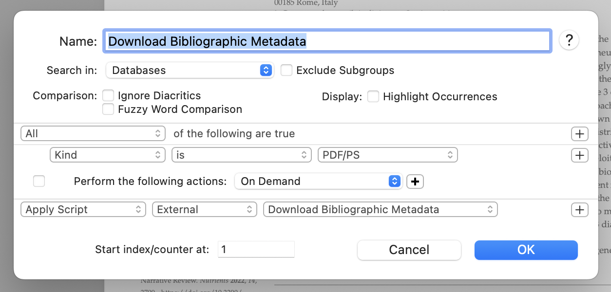I am trying to build a custom script based on ~/Library/Application Scripts/com.devon-technologies.think/Smart Rules/Download Bibliographic Metadata.scpt . This script is what powers the “Download Bibliographic Data” smart rule.