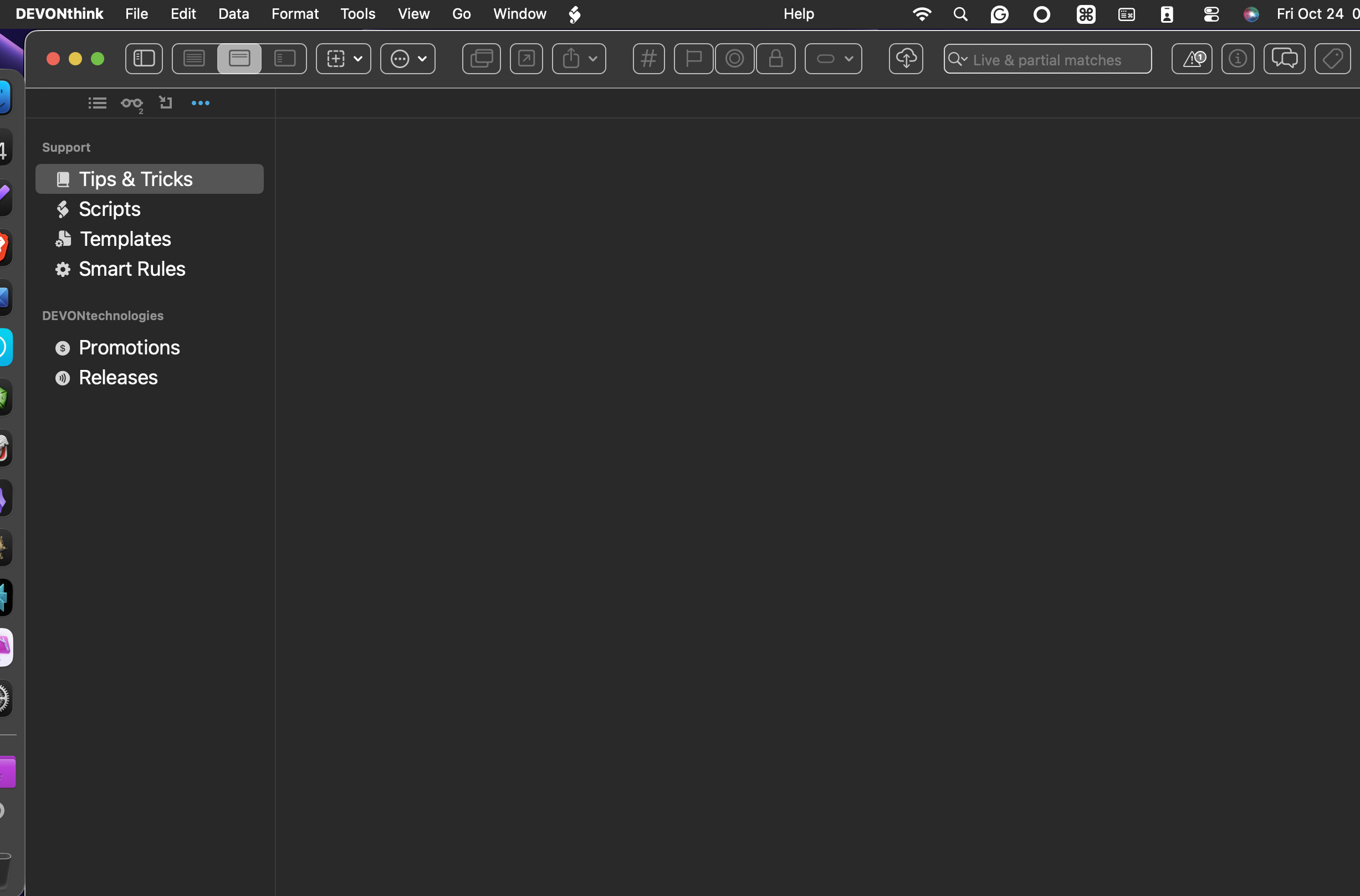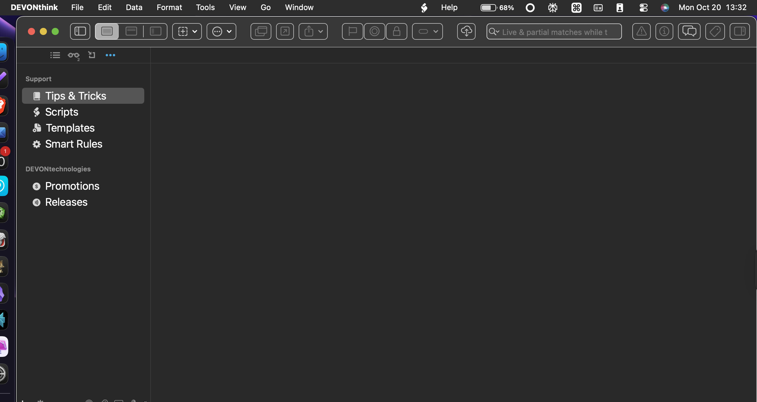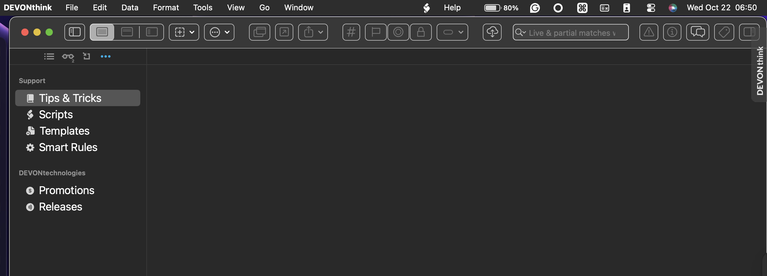 - Quit and relaunch DEVONthink and check the Extras sidebar.