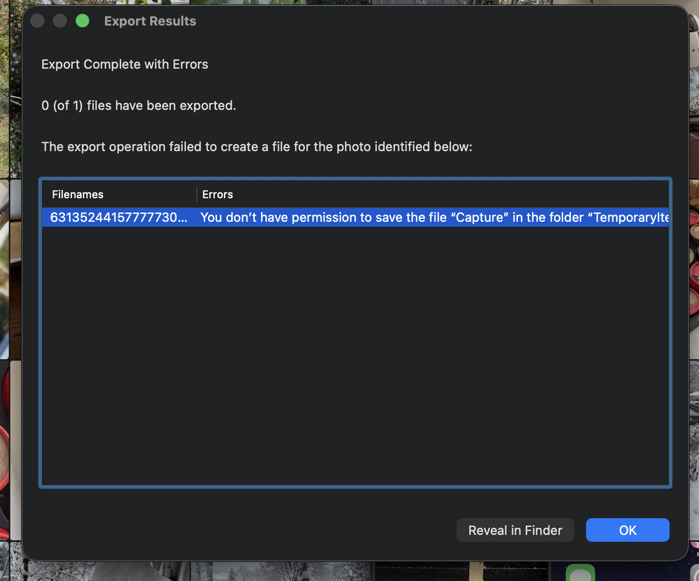 the photos move into DEVONthink anyway though but I have to dismiss that window by clicking ‘OK”.