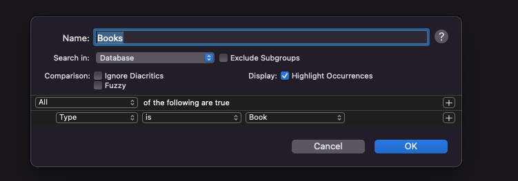 Note also that the smart group is only looking in a subfolder, which has 100s of items, not 10,000s.
