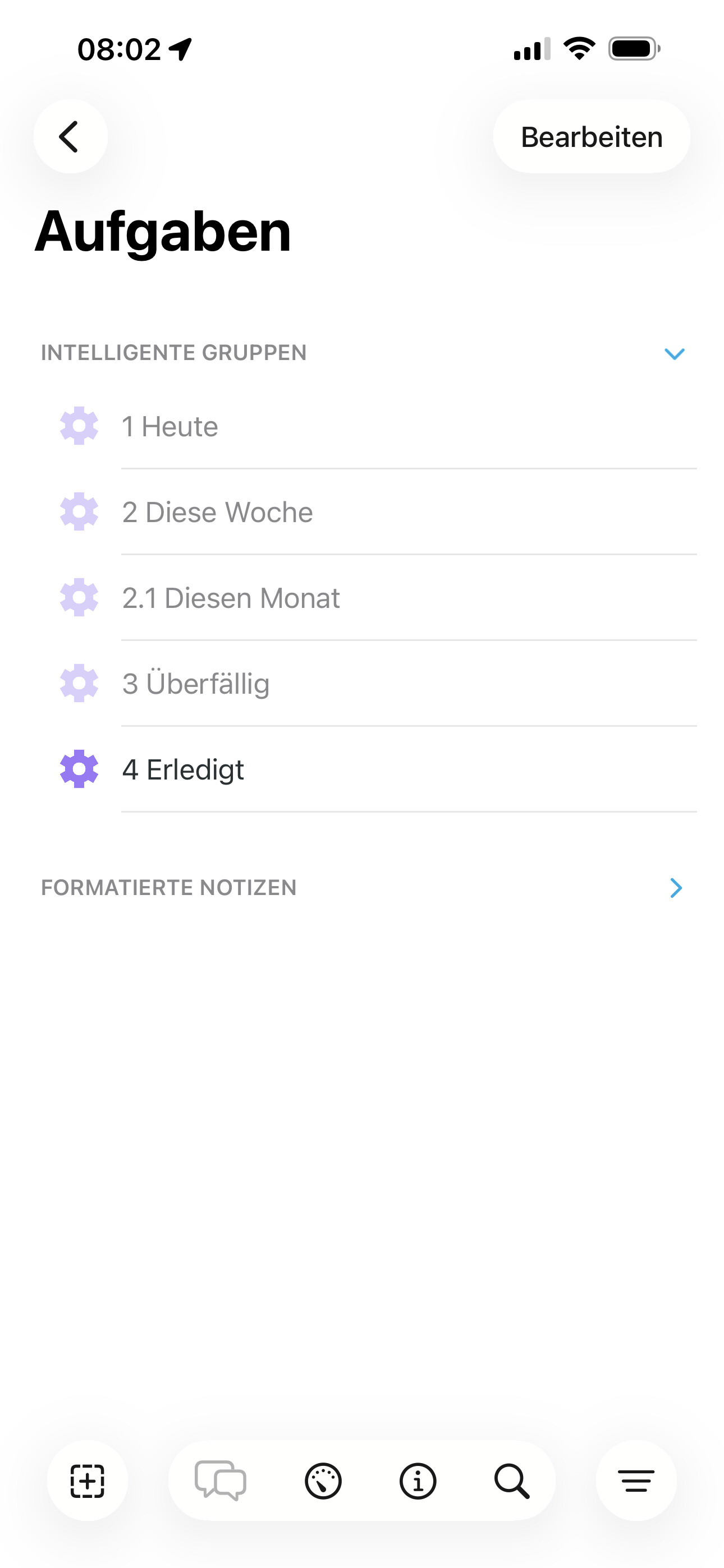 The same group—but without a due date—is also displayed, and the group can be opened and the content displayed.
