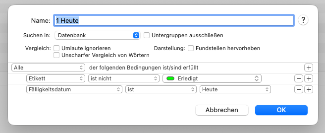 When I create a smart group within a database on my iMac based on a due date, this group is displayed in DTTG4, but the group cannot be opened and the content cannot be viewed. The group is grayed out.