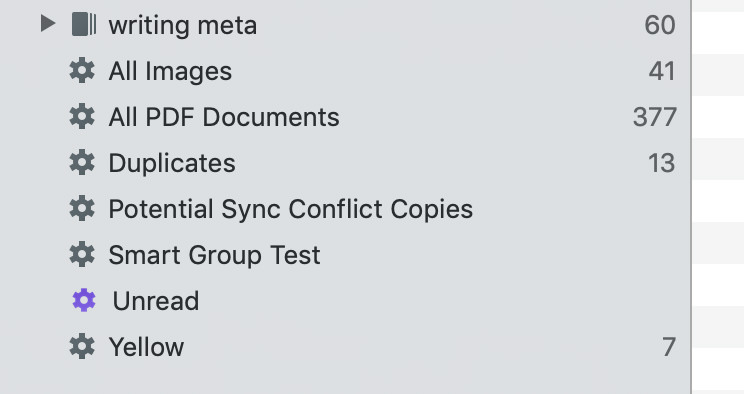 I’d like to just round off my comments in this thread by saying that I hope it isn’t impossible in principle for smart groups which do use the search index (e.g. string queries) to be made to show item counts (maybe at some point in future development), as I do find myself glancing at the list and assuming that there are none in that smart group, while there are.