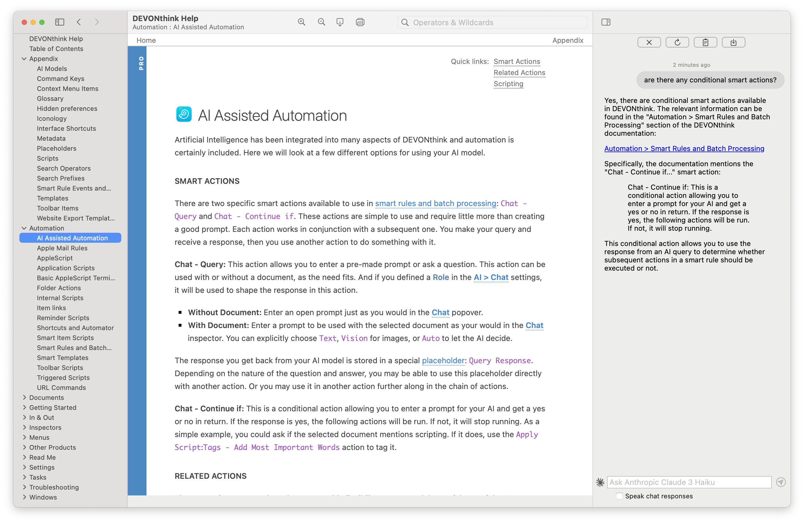 There is only one conditional action: Chat - Continue if. This is noted in the Automation > AI Assisted Automation section of the built-in Help and manual…