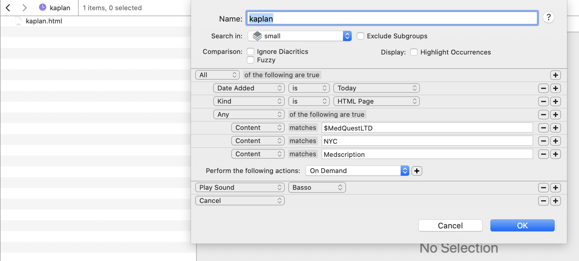 That said, I think it’s simpler to just have the smart rule convert the .html to .pdf or .rtf. And then if desired, convert back to .html from there.