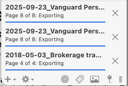 When importing SnapScan documents the import status bar hangs and never clears. If I hit the “x” to clear the documents have been imported.