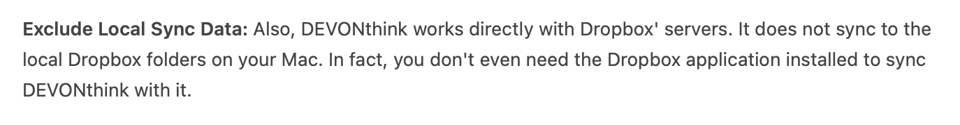 The Dropbox application isn’t needed for DEVONthink to sync. I thought I covered that in the Help… indeed I did…