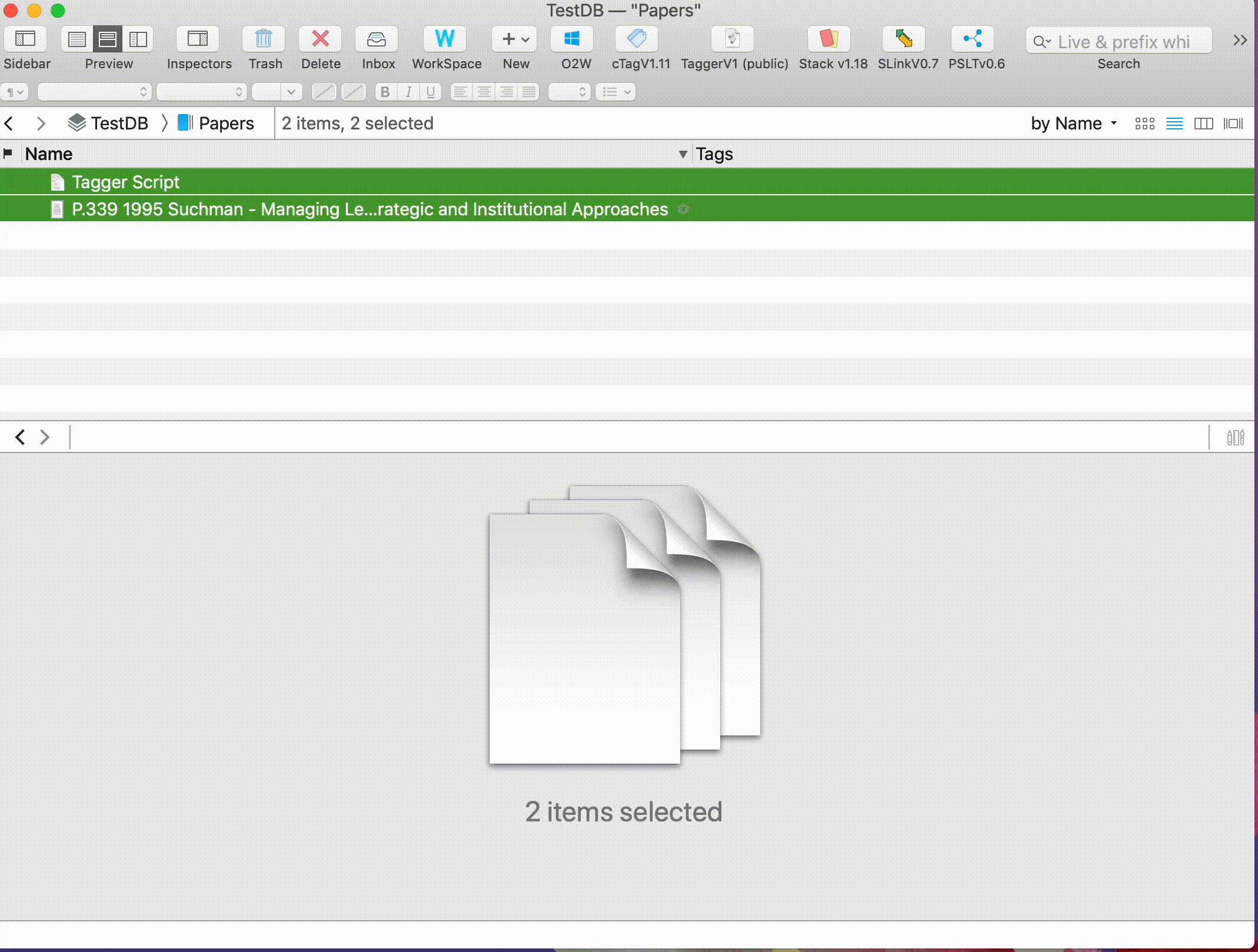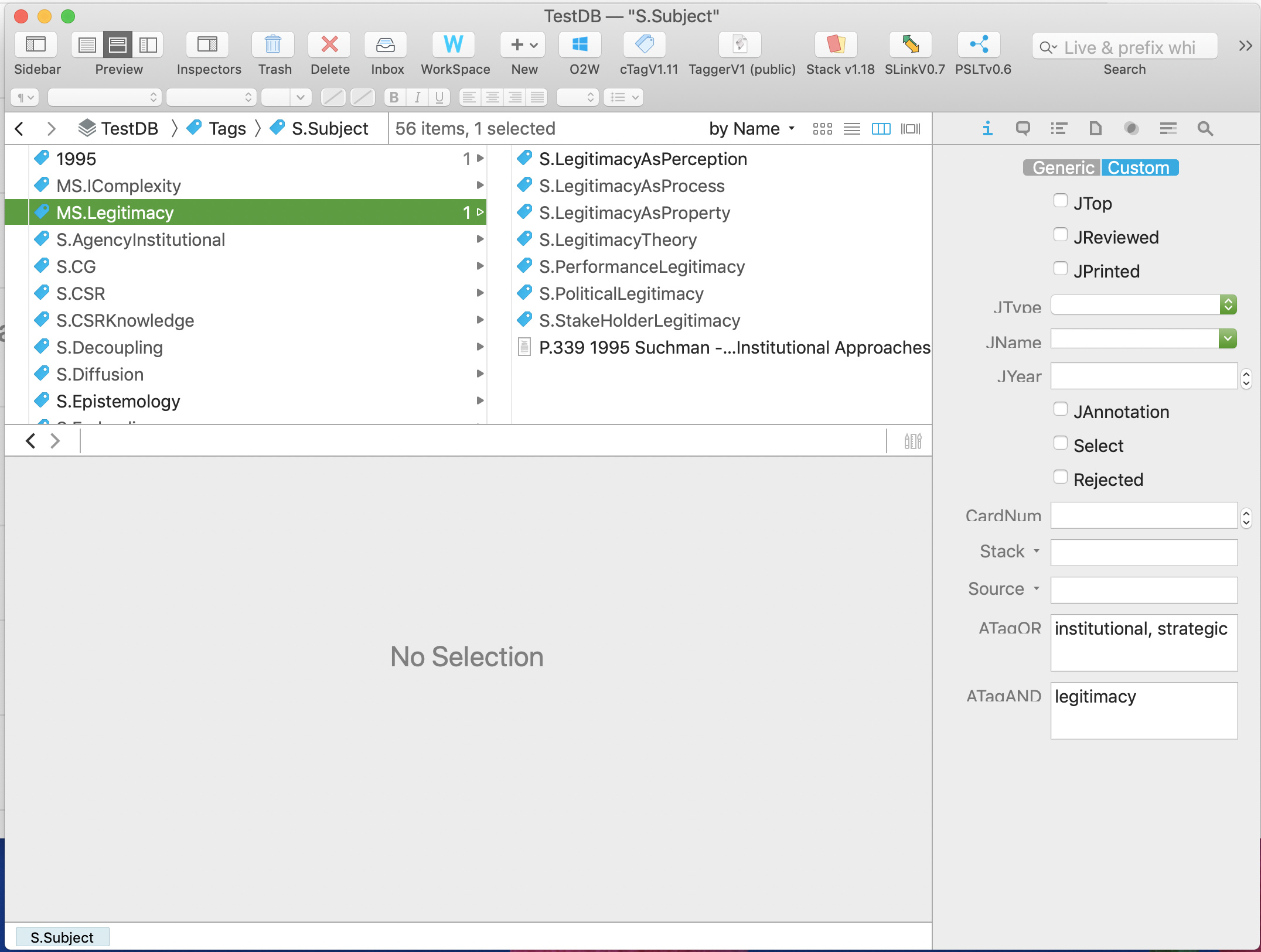 (1) I believe that the concept of auto-tagging is more applicable to one or few items and to items with small amount of text at each activation (snippets of text, bills, pdf<20pages, etc). Because it is very difficulty to control the quality of auto tag-assignments to a large number of items or items with many words. Perhaps the best application of tagger is to classify an item when it’s in the inbox (BUT the items cannot be in global inbox because Tagger won’t know which tags list to call), or an entry of project description, or some literature that are just downloaded from publishers.