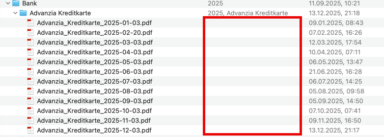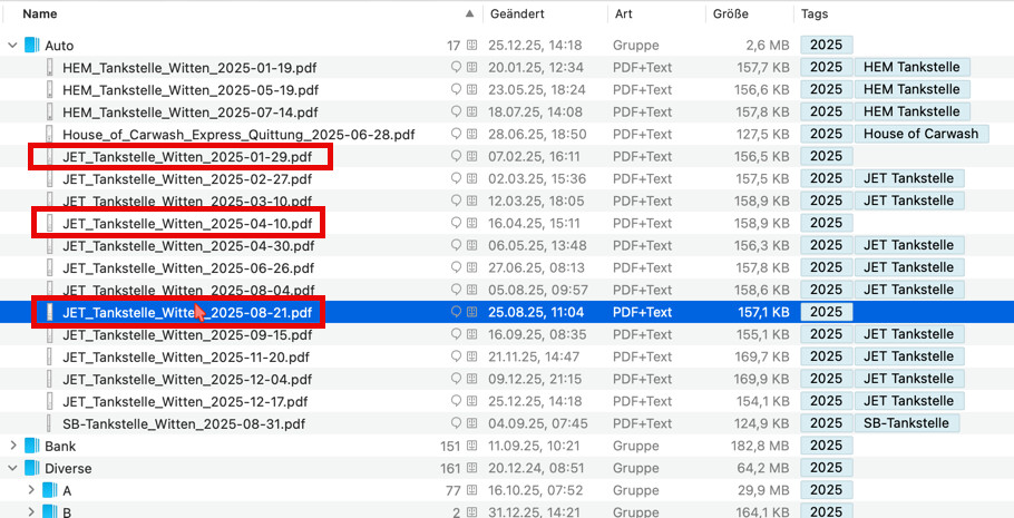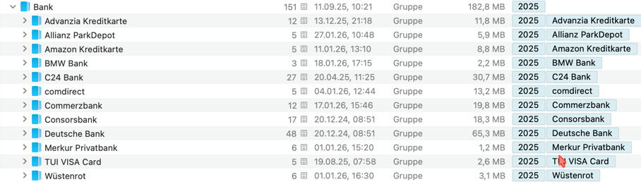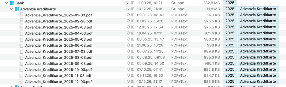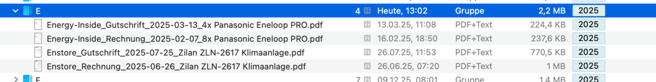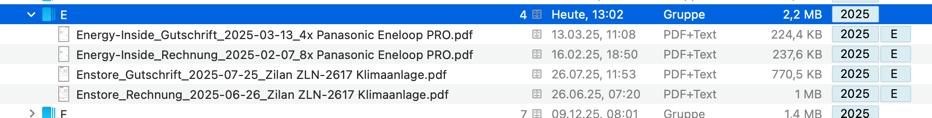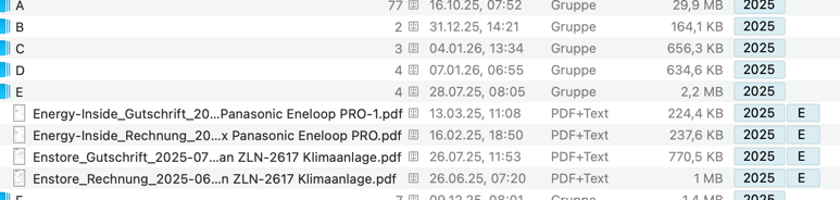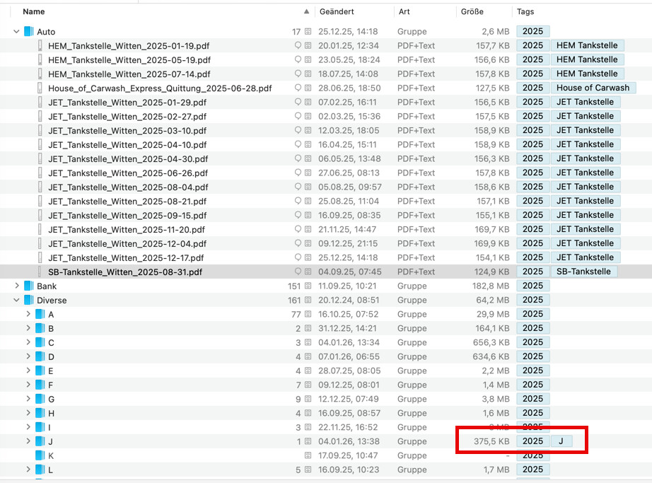 Die Gruppe mit J ist in DEVONthink angelegt und verschwindet auch nicht (Genau wie 2025)