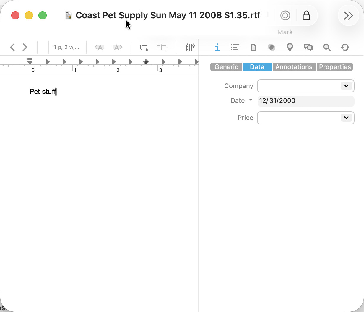 Clearly, DT is orders of magnitude superior to Neat and Paperless; it’s really not even in the same galaxy. I actually did consider DT when I first started organizing documents many years ago, but thought at that time my particular needs were better served by software more narrowly focused and maybe a bit easier to learn. I’m quite happy now to move on and really appreciate the community that is actively engaged in assisting neophytes: I could not have moved from Paperless to DT without the useful advice I found here.