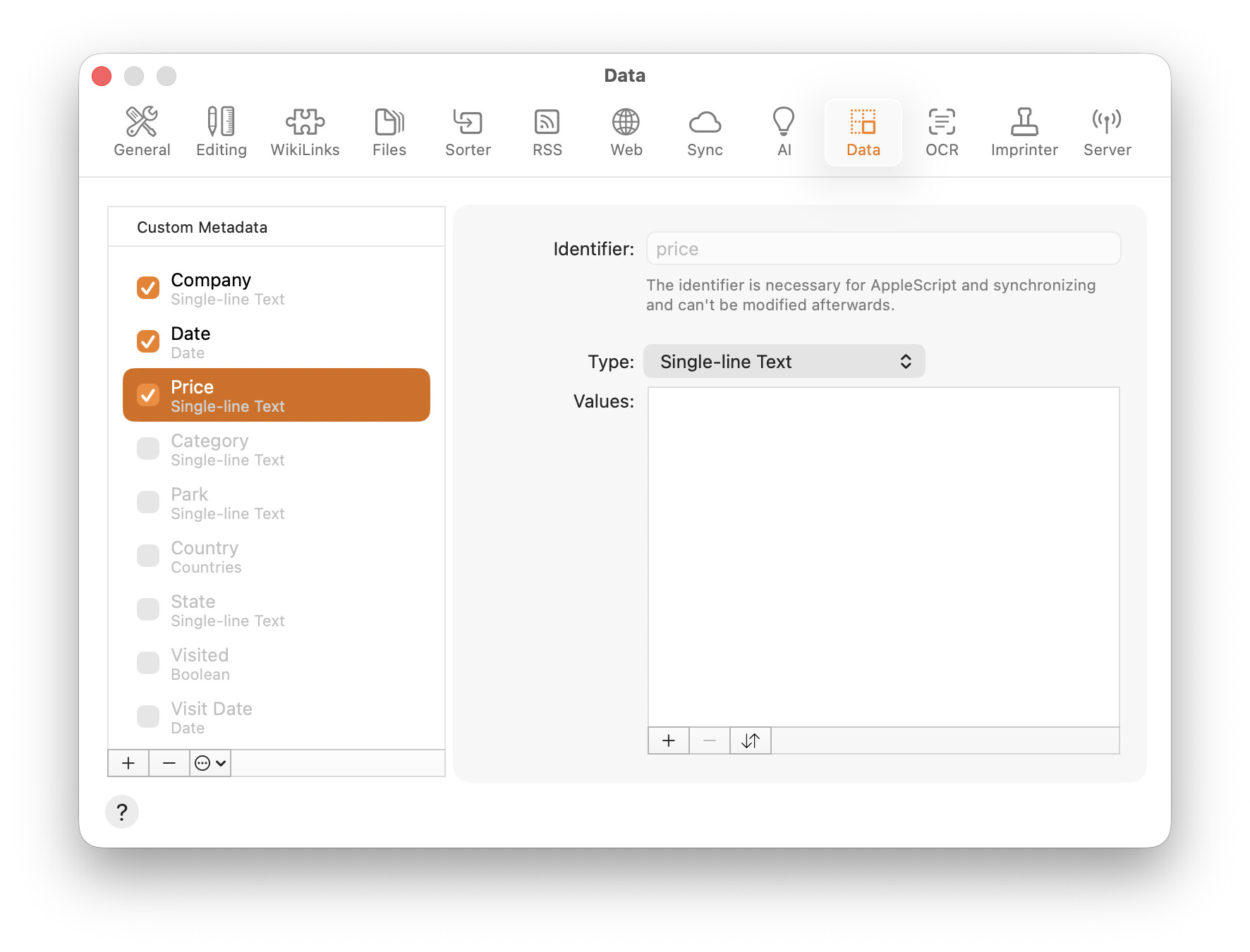 Custom metadata setup