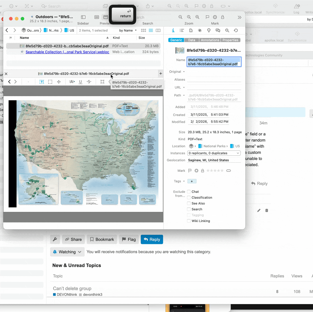 How do I retrieve the text in the “Title” field under the Inspector’s Properties and copy it to the “Name” field or a custom metadata field? I have ~20,000 pdf records I’ve imported and want to replace the 36-character random alphanumeric “Name” field with the data from Inspector→Properties→Title field. I can replace the “Name” with the “Title” one record at a time, but this is not realistic for 20,000 records. I can live with the data in a custom metadata field, too. The data also appears in the source pdf file when I use “get info”, but I’ve been unable to develop a script that will extract this data from either the Finder or DT4.2. ANy ideas would be appreciated.