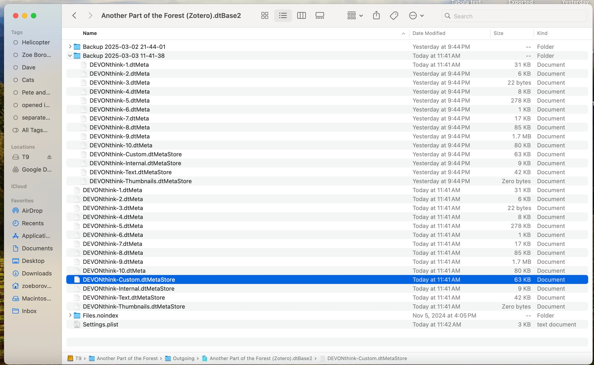 I can locate the versions of the DEVONthink databases that were archived/zipped before uploading to Google drive. BUT, I still need help figuring out how to restore the custom metadata if the version I uploaded was subscequently edited/revised by others in our group.