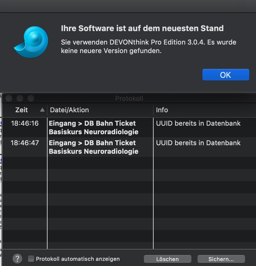 On DT when I try to move again the documents from global inbox to their destination, where a copy already is, DT displays “UUID already in database”. So it’s clearly the same document.