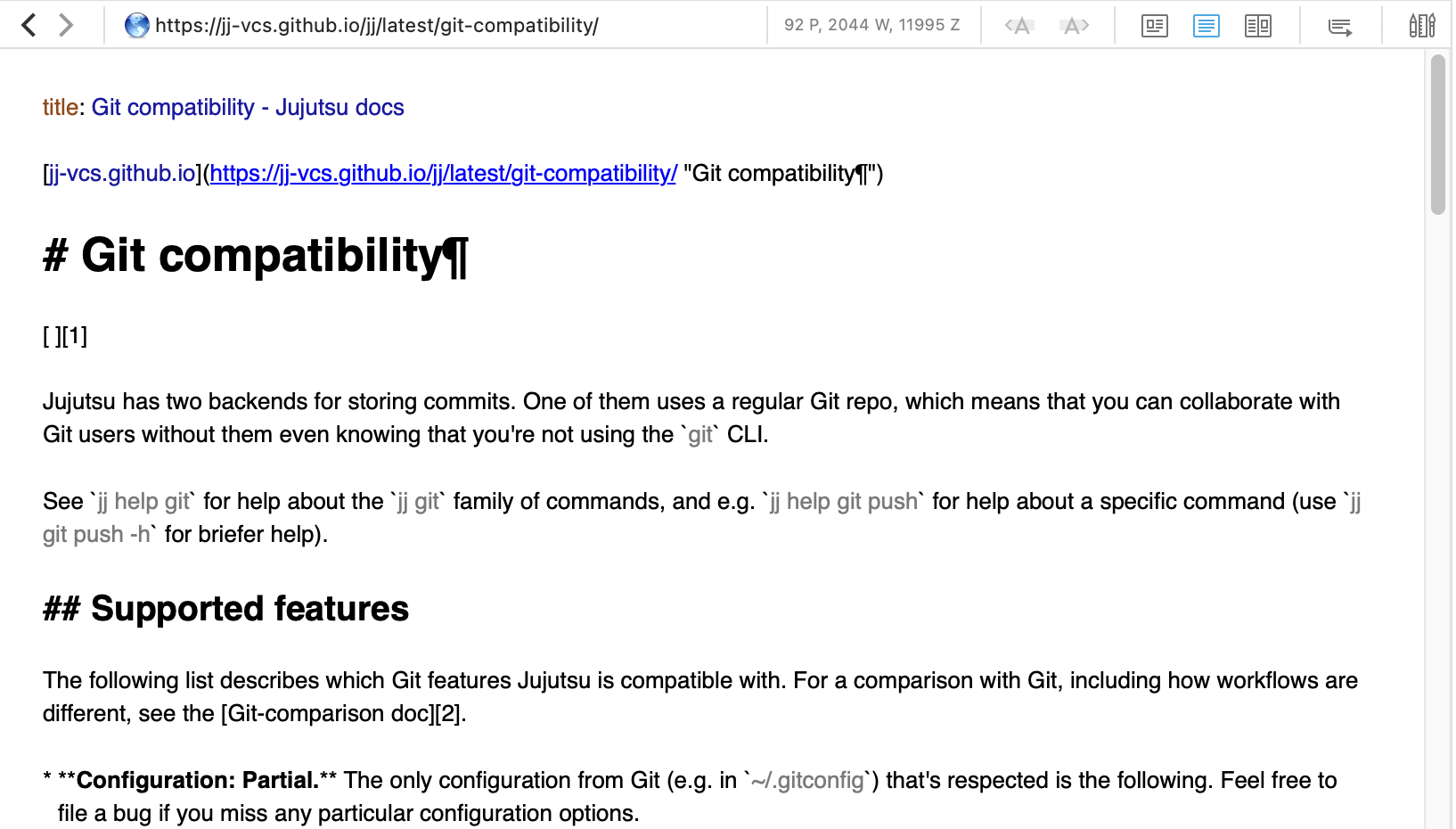 When I clip the webpage Git compatibility - Jujutsu docs as Markdown with the “Clip to DEVONthink” extension from Safari or from Firefox to DEVONthink 4, always an (empty) webarchive arrives in DEVONthink.