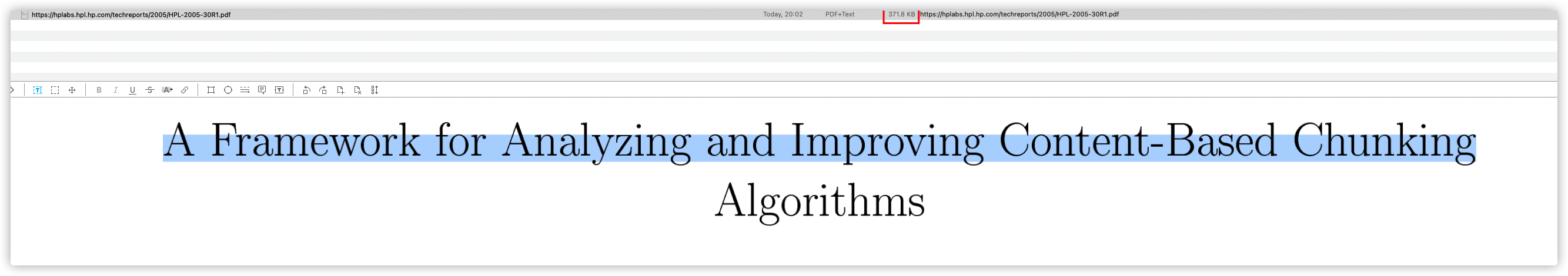 The file size is increased, quite likely due to a difference in compression algorithms used and PDFKit, but I’m not seeing an issue highligthing that PDF.