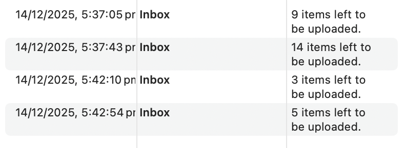 That being said, there is lot already written in posts here and documented. No need to repeat here the admonitions about indexing already written about in the “In and Out” and “Troubleshooting” sections of the DEVONthink Manual. Also search this forum for “left to be uploaded” for info which may help. As a starting point, please re-read now that you have some first hand experience.