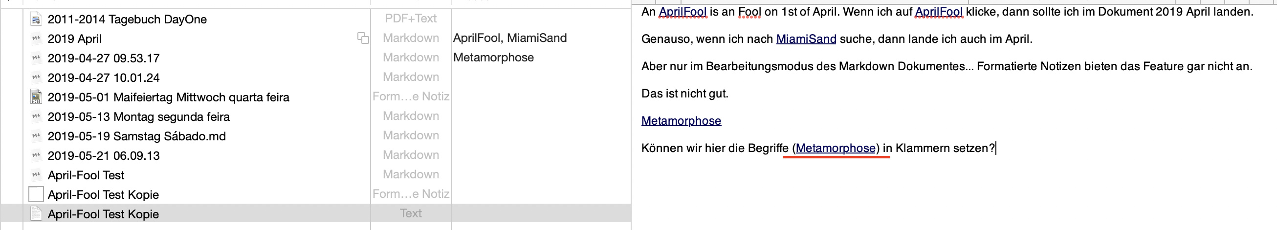 after reading this post I was experimenting with aliases and WikiLinks in DT2 and DT3. In DT3 the Aliases do not become links, when in Brackets. In DT2 this works. It ist only when using brackets. So writing (ArtificialIntelligence) in the text is not recognized, while “ArtificialIntelligence” is recognized.