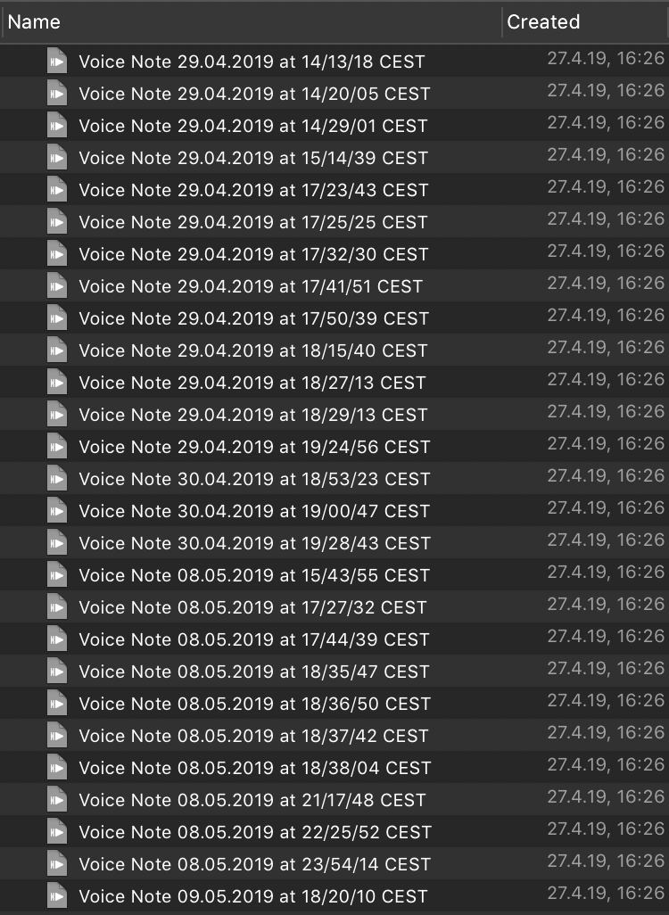 Every voice note recorded using the Sorter DT3b1 has the same date created: 27/4/2019, 16:26:37